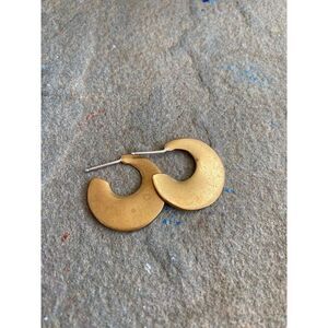 Vintage Hoop Earrings Hoops Brass Chunky Gold Tone Flat Half