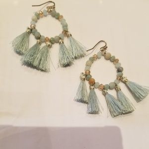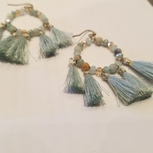 We've added some vintage earrings to our collection! There's a pair of grey and gold tassel studs, purple bead hoop earrings, and turquoise beaded tassel hoop-shaped earrings with hooks. Take your pick!