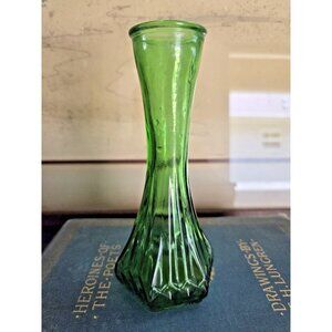 Vintage Hoosier Glass 4063-C Green Bud Vase 6" Pressed Glass Flower Holder