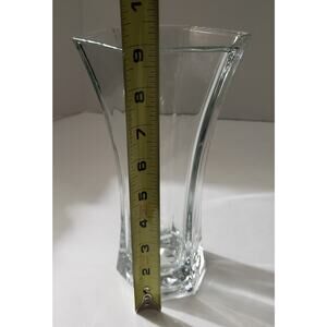 This beautiful vase has a heavy base and is in excellent condition! It's a beautiful addition to any vase collection, and is great for holding a variety of long-stemmed flowers. It is 9" high. The base is approximately 3" across, while the top opening is approximately 5 inches across.