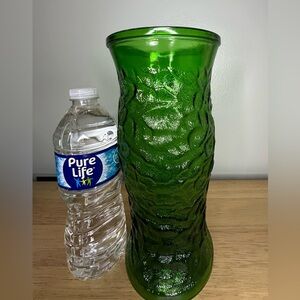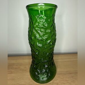 Vintage Hoosier Glass beautiful emerald green crinkle textured glass vase 9.5”