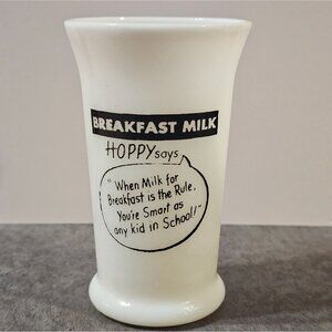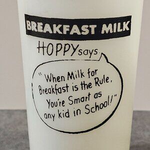 vintage milk glass, cowboy kitchenware, western collectibles, western-themed glass, breakfast milk promo, antique glassware, Hoppy milk glass, nostalgic tumbler, americana glassware, milk glass tumbler, retro kitchen decor, hopalong cassidy tumbler, vintage advertising glass