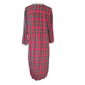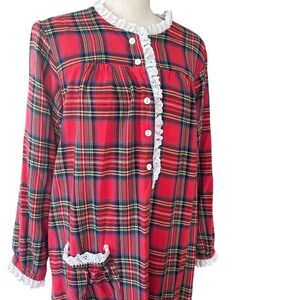 Vintage Hopeless Romantic Red Plaid Flannel Nightgown Med Lace Trim Cottagecore