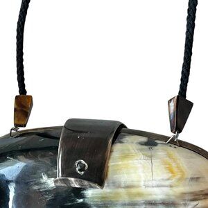 This vintage horn bag is a unique accessory, combining traditional craftsmanship with modern design. Its compact size makes it ideal for carrying essentials, while the durable horn material ensures longevity. The 17" handle drop allows for versatile wear as a shoulder or crossbody bag.