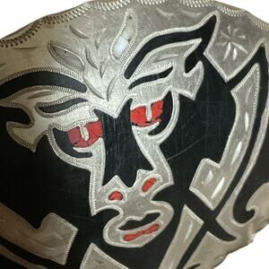 Vintage Horned Steer Hand Engraved Inlay Western Belt Buckle Ornate Cowboy
