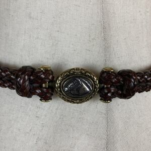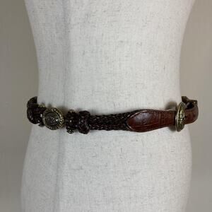 Vintage Horse Head Belt Medium Brown Leather Western Braided Cowgirl 90s Concho