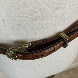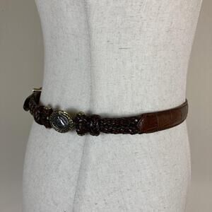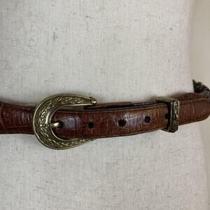* Vintage western-style belt with brown leather croc-embossed center sections and braided leather sides.