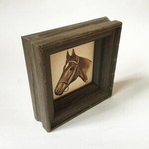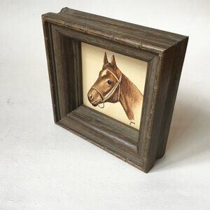 Vintage Horse Head Equestrian Art Painting Wooden Frame Signed gae