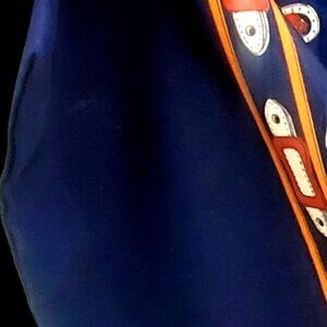 Classic equestrian vintage scarf in navy blue and golden brown