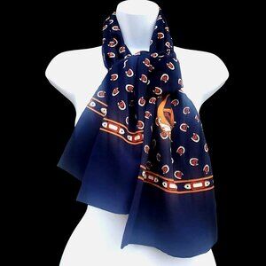 Vintage Horse Scarf Equestrian Retro Rectangular Navy Brown 26 x 10 Unisex