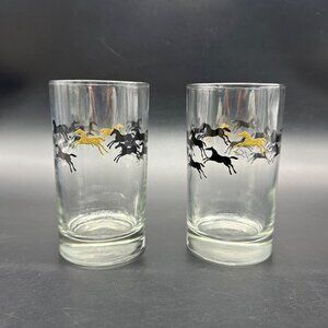 Vintage Horse Tumblers Libbey J Scott Stampede 1970s Black Gold Retro Barware