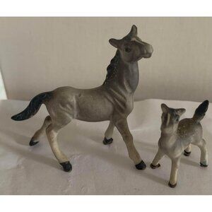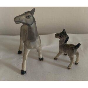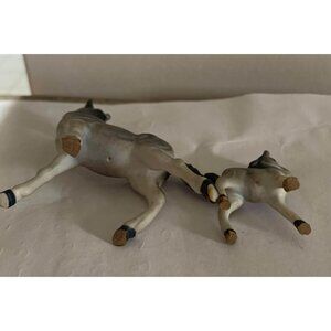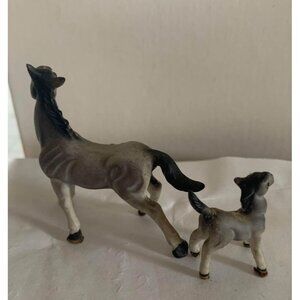 This Vintage Horse and Foal Bone China Figure Set flawlessly captures the bond between a mother horse and her foal. Each figure stands 1.25 to 2 inches tall, perfect for any collector's shelf.