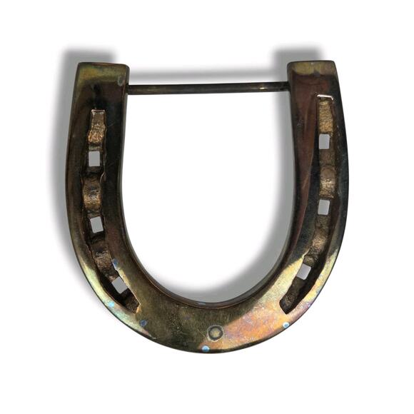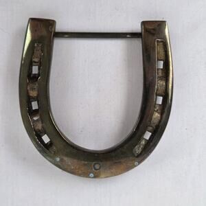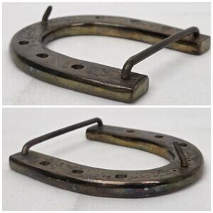 Vintage Horseshoe Belt Buckle Gold Toned Solid Cast Metal Lucky Western Cowboy