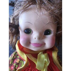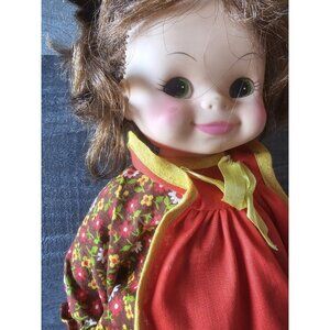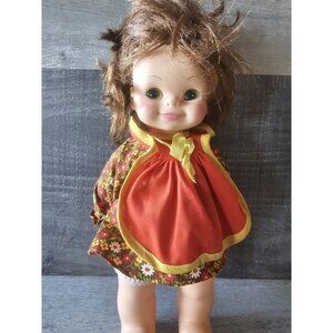 Vintage Horsman Dolls 1974 Brunette Green Eyes Hard Plastic Groovy Hippie Dress