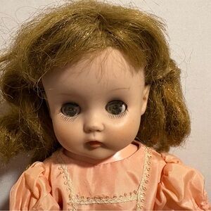The Vintage Horsman No. 30 Sleepy Eye Doll is a 13-inch play doll made in the USA in the 1970s. This authentic doll features light brown hair, original clothes, and a classic sleepy eye design. Crafted from cloth material, this collectible doll is a nostalgic piece for collectors and vintage enthusiasts. Made by the renowned brand Horsman, this doll is a charming addition to any doll collection.