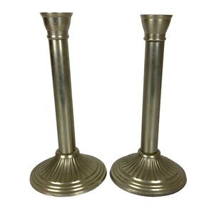 Vintage Hosley Pewter Candle Holders Pair 8.5 inch Traditional Table Shelf Decor