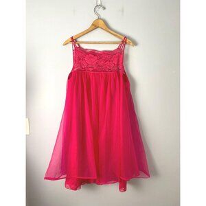 Vintage Hot Pink Babydoll Chiffon Nightgown Dress by Flair, Size M, 60s Lingerie