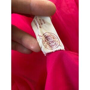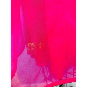 NOTE: there are some yellow spot (maybe paint?) on the outer layer, as shown. A little unraveling of the lace. Please see photos. This was a hard color to capture. It is a bright, hot pink.