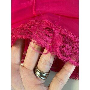 Vintage Hot Pink Babydoll Chiffon Nightgown Dress by Flair, Size Medium, Lingerie, Lace Trim Nightdress