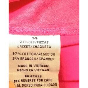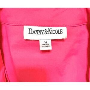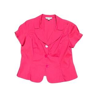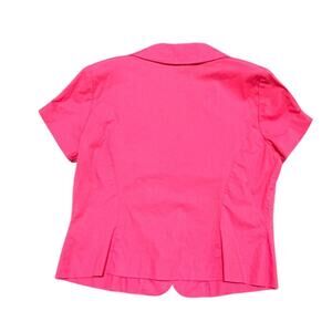 Danny & Nicole vintage short sleeve top in hot coral pink with wide notched lapel, buttons, and tailored fit. Size 14. 97% cotton, 3% spandex. Slight shoulder padding gives it that true Y2K-meets-Barbiecore feel.