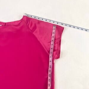 Vintage Hot Pink Mid Century Boxy Drapey Blouse in good vintage condition. Smooth silky finish. Blouson fit with Boat neck and relaxed sleeves. Keyhole back. Loved and worn. Flaws include light threading. Tagged 16–fits like a Large/XL IMO.