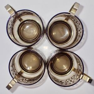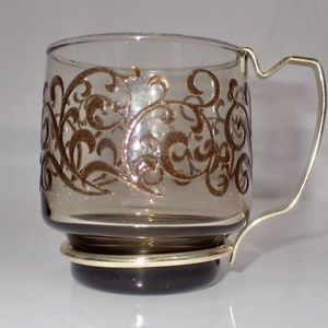 Vintage Hot Toddy/Punch Glasses Set of 4 Brass Handle Painted Scroll Design MCM