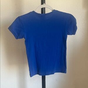 This vibrant blue baby tee features a playful graphic design, perfect for adding a pop of color to any outfit. Comfortable and stylish for everyday wear.