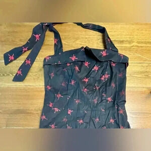Morbid Threads halter dress, features red skull print all over (some faded but appears to be intentional), tie halter straps, collar chest, and zipper back. Women’s size medium, a little stretch.