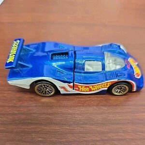 This vintage Hot Wheels car from 1983 is a must-have for any collector or fan of diecast cars. The car is a 1:64 scale race car from the Hot Wheels Racing series, featuring a blue and white color scheme and an engine compartment. The car is made from high-quality diecast material and was manufactured in Malaysia by Mattel.