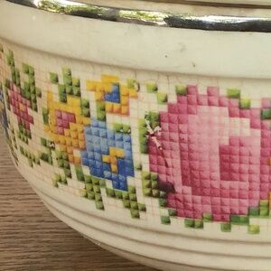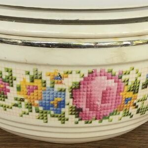 Vintage Hotoven Harker Cookingware Serving Bowl & Lid Cross Stitch Pattern