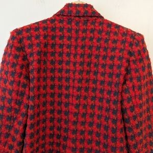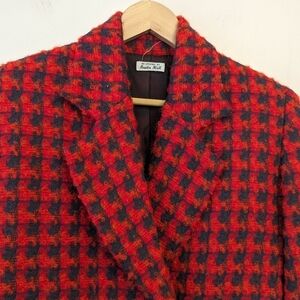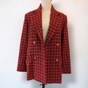 Vintage Houndstooth Boucle Tweed Double Breasted Blazer Preppy Maximalist