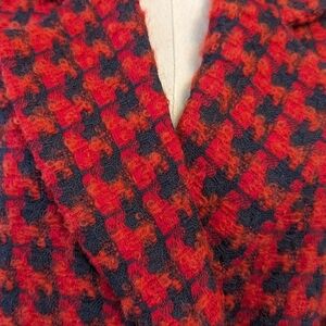 textured boucle tweed houndstooth knit. there is no content tag but it feels like mohair and wool