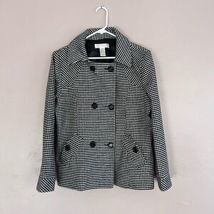 Vintage Houndstooth Button down Jacket with Shoulder Pads, Size 1XL