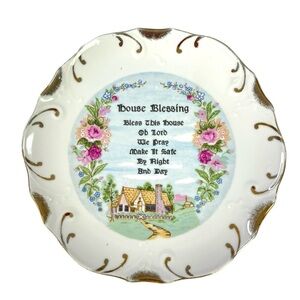 Vintage House Blessing Wall Decor Plate with 18K Gold Trim