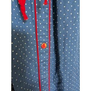 Vintage House Dress Blue Polka Dot with Windmill Embroidery Cottagecore Size Large