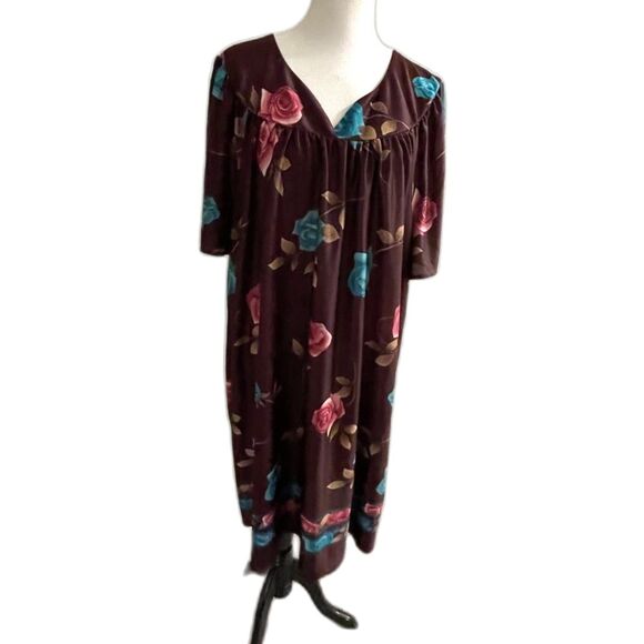Vintage House MooMoo Roses Floral Brown With Pockets House Lounger Dress SIZE 2X
