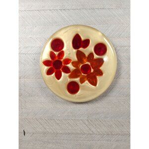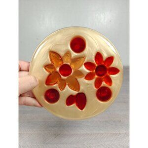Vintage House Of Mosaics Plastic Trivet Red Orange Floral MCM Design Handcrafted