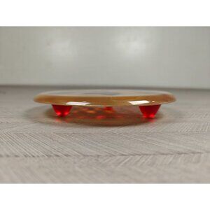 Durable and lightweight plastic trivet featuring vibrant red and orange floral accents. Perfect for protecting surfaces while adding retro charm.