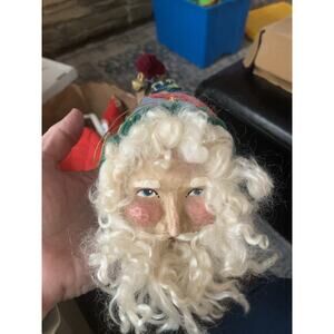 Vintage House of Hatten Christmas Santa Claus Head Ornament Paper Mache Face.