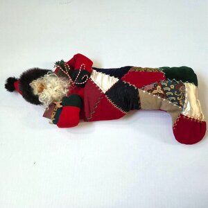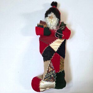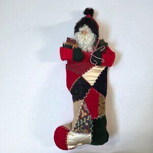 Vintage House of Hatten Crazy Quilt Patchwork Stocking 3D Santa Folk Art