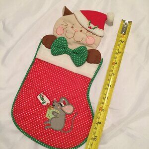 Vintage House of Hatten Kitty/Mouse Appliqued Christmas Stocking 11" x 6"