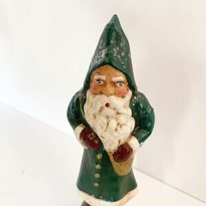 Vintage House of Hatten Old World Santa Figurine 5" Green 1994 Chalkware Dolores.