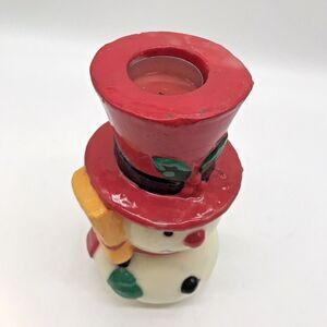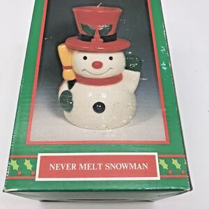 Vintage House of Lloyd Christmas Around the World, Never Melt Snowman in Original Box. Removeable Tea Light Candle has been lit and box shows storage use. So cute for the winter season. 541598 Measures 7.75 x 4.5.