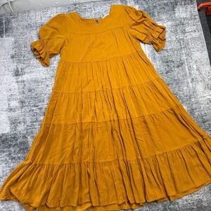 Great day dress or house dress in blue tone print. Buttons up the front at at wrist. Perfect to pair with a belt or wear open with a slinky dress underneath or over pants/shirt.