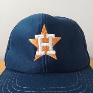 Vintage Houston Astros Trucker Snap Back Hat - Size Medium/Large Adjustable Snap - Excellent Condition, No Flaws