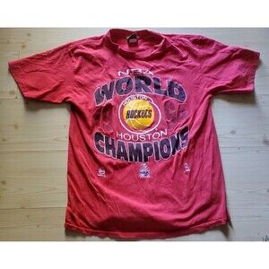 Vintage Houston Rockets 1994 NBA World Champions T Shirt L Red Nutmeg Brand vtg rare
