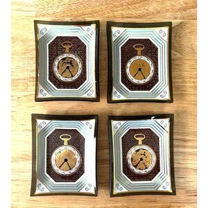 Vintage Houze Art Glass Gold Vermil Pocket Watch Mini Trays Set Of 4