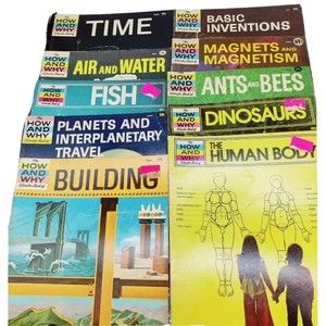 Discover a captivating collection of 14 vintage How And Why Wonder Books, featuring a variety of educational science topics. Each book is illustrated by various artists and covers subjects such as science and nature. This mixed lot includes books published by Wonder Book in the 1960s and 1970s, all printed in English.