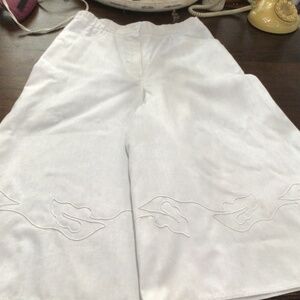 Vintage Howard Wolf wide leg gaucho pants with the best. Size small/26. This set is really really cute. The vest has a tie in the back where you can adjust the size if you would like it to be tighter. The measurements on the vest from pit to pit is approximately 16 inches and that is with the vest closed. The length of the vest is approximately 18 inches. Measurement of the pants are as follows. the waist size from side to side is approximately 15 inches. The rise is approximately 15 inches. The inseam is approximately 16 1/2 inches. The width of the bottom of the pants from side to side is approximately 18 inches. The gaucho pants do you have two front pockets, And a small design on the pants and the vest. If you have any questions, please contact me. Thank you and have a great day.