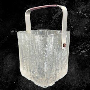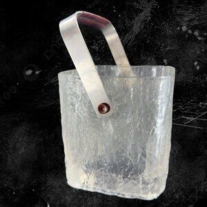 Vintage Hoya Glacier Ice Bucket Barware MCM Frosted Glass Clear Glass W Metal Handle